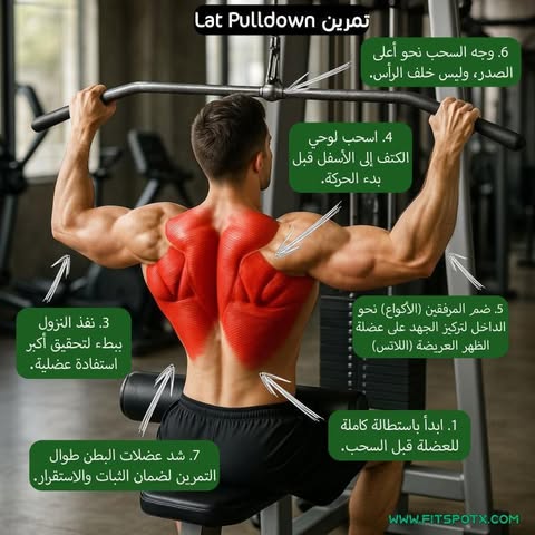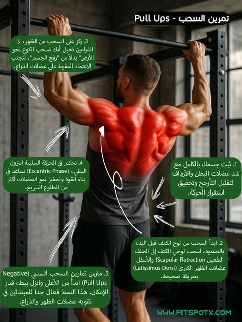 أولًا: إتقان السحب العلوي (Lat Pulldown / Pull-ups)