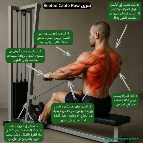 - Seated Cable Row (السحب بالكابل جلوسًا)