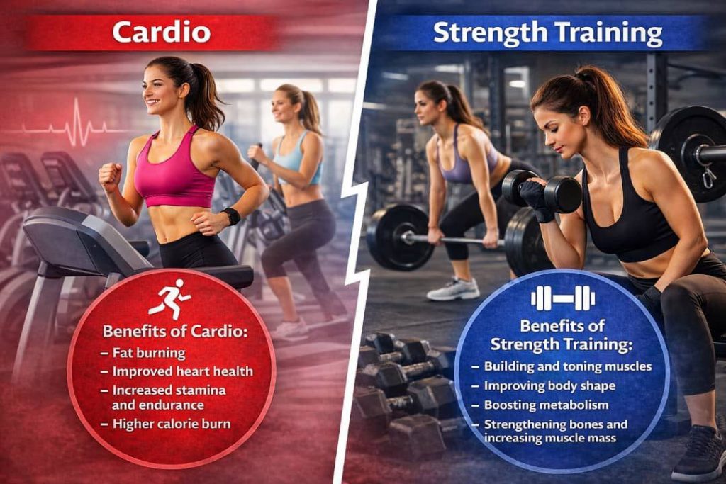 هل الكارديو أفضل للتنحيف أم تمارين المقاومة ؟ الاجابة ليست بسيطة بنعم أو لا لأن لكل نوع من التمارين دور مختلف في جسم المراة وفي هذا المقال نوضح الفرق بينهما ، فوائد كل نوع ، وأيهما الأنسب للتنحيف الصحي المستدام .