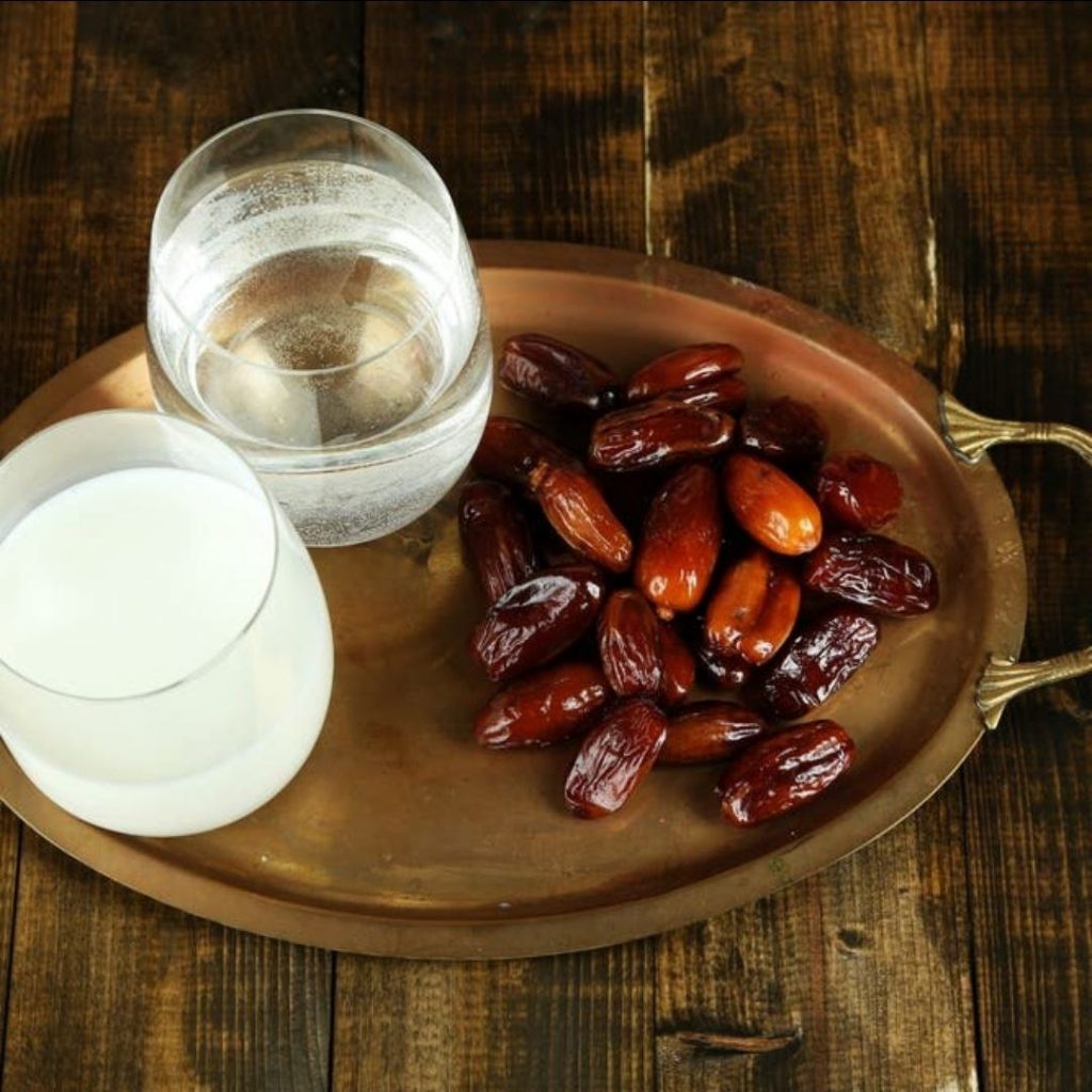 من السنة النبوية البدء بالتمر ، ويمكن تناوله مع كوب حليب